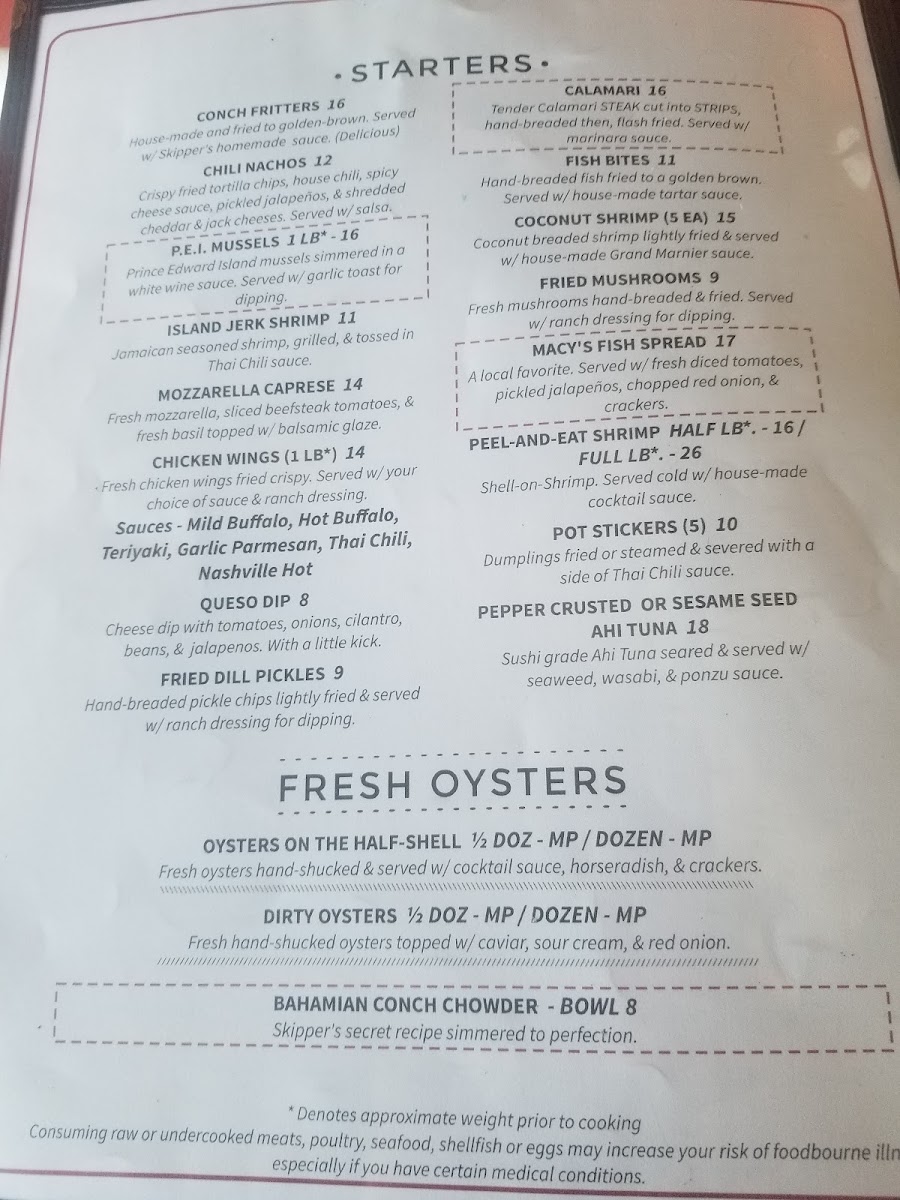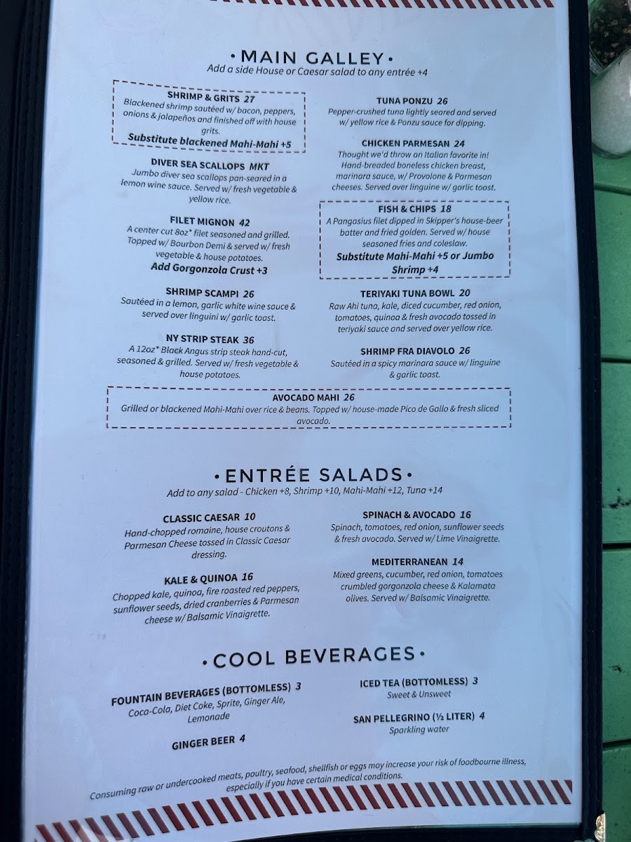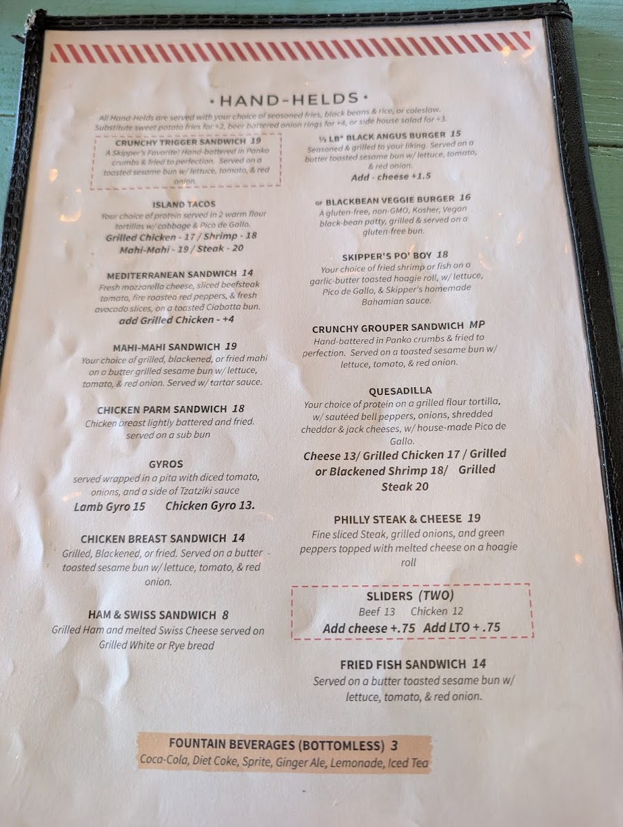 The menu at Skipper's Cove Bar & Grill offers a relaxed blend of seafood classics and comforting bar favorites, perfectly suited for casual dining with a waterfront view. Whether you're stopping by for a midday bite or settling in for an evening meal, the selection brings together fresh catches and hearty options in a warm, inviting atmosphere.