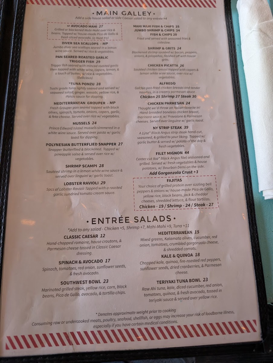 You can expect thoughtfully prepared dishes like fish and chips, lobster rolls, and shrimp tacos, alongside satisfying choices such as burgers and chicken wings. The menu balances lighter fare, including salads like the spinach avocado salad, with rich entrees like lobster mac and cheese or grilled mahi mahi served with black beans and avocado. Kids are welcomed with simple favorites such as grilled cheese or beef sliders paired with fries.